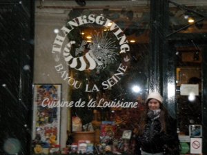 Jennifer devant un magasin louisianais à Paris. C'est génial, non? / Jennifer in front of a Louisiana-style store in Paris. Cool, huh?